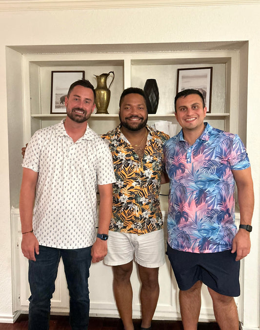 Our button downs feature a spread collar and athletic fit. Lighter weight than our Hawaiians, these shirts have a matte finish and light stretch.